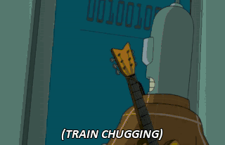 (TRAIN CHUGGING) (SCREAMING) (BEEPING) Breaker, breaker. Hola. (PANTING) Professor, help. The hero of my folk song tried to run me down, and Fry refused to save me.