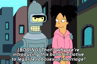 (BOOING) That's why we're introducing this ballot initiative to legalize robosexual marriage!