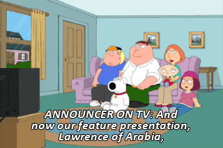ANNOUNCER ON TV: And now our feature presentation, Lawrence of Arabia,