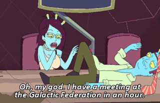Oh, my god. I have a meeting at the Galactic Federation in an hour. Oh, I'll never make it. Ah, I'll push it to next week.