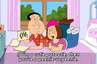 If I'm a cutie patootie, then you're a peenie-vageenie. Aw! I heard a cute "aw" in there. Cool down! (HISSING) Meg, there's something we need to talk about.