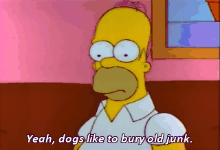 Yeah, dogs like to bury old junk. Yeah, you stupid idiot.