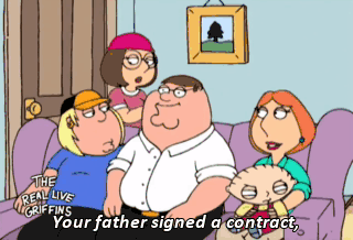 Your father signed a contract, And now we're gonna be on T.V. for the next 6 months.