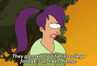 They planted traditional college foliage: Ivy, trees, hemp. Soon, the whole planet was terra-formed. Does that mean it's safe to breathe the air? Of course. Over here is Wong Library.