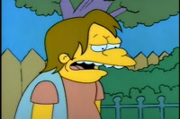 So, Mister, what are we doin' here anyway ? I wonder where Bart is. Yeah. It's way past 1500 hours. Okay, we all know why we're here, right ? No. Why ? To fight nelson the bully.