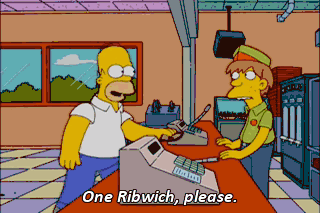 - One Ribwich, please. - Mm-hmm. Mmm! "Now without lettuce."
