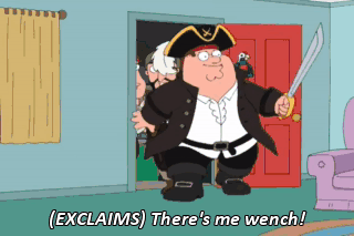 (EXCLAIMS) There's me wench! Peter, what the hell are you doing? That's Long John Peter to you, porthole.