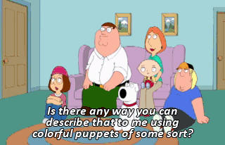 Is there any way you can describe that to me using colorful puppets of some sort? The Nielsen box will monitor your viewing habits. (SNICKERS) I don't like the left puppet. His chin is scary.