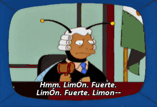 Hmm. LimÓn. Fuerte. LimÓn. Fuerte. Limon-- ¡Ay, Ay, Ay, Ay, Ay! ¡Mi estÓmago! Daytime TV is muy estÚpido. Hey, our school's on TV. Springfield elementary has reopened its doors.