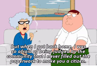 but when I got back home, I was so afraid of being judged by the community that I never filled out the paperwork to make you a citizen.