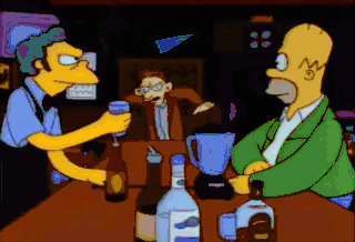 Hey, your love tester's busted. I want my nickel back. Hey, buddy, have one on the house. Hey, this drink is delicious and my phlegm feels looser. What do you call it? It's called a Flaming... ...Moe!