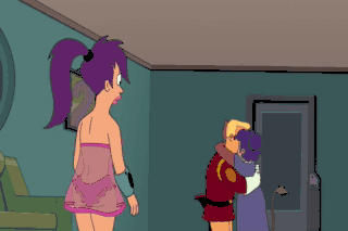 I think a motel room might be in order. Leela, here's $40. Mom, don't do this. Zapp is a selfish, womanizing idiot. There's no need to call me names, Leela. Just call me, "Daddy." (SCREAMS)