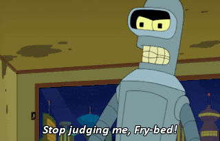 Stop judging me, Fry-bed! (BENDER GRUNTING)