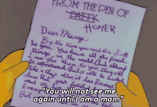 "You will not see me again until I am a man." Oh, Homer... Homer! We're all in shock.