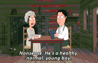 Nonsense. He's a healthy, normal, young boy. Ma, Pa, I killed my pet raccoon. Why, Davy? So I could have this cool hat and 'cause it felt like heaven when I was doing it.