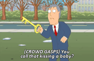 (CROWD GASPS) You call that kissing a baby? That's how you kiss a baby. I hereby declare this Stabby Eye Day! (SCREAMS)
