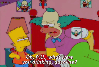 Oh, P.U., what were you drinking, gasoline? Yes, I was drinking gasoline, Mother.