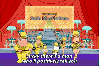Lucky there's a man who'll positively tell you all the things that make us laugh 'n' cry he's A family Guy Peter, We need to talk-- Not now, Lois. The show's about to start.