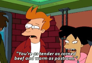 "You're as tender as corned beef and warm as pastrami." I wuv my mommy.