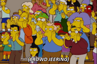 (CROWD JEERING) How dare he? That's the flag my grandpappy rebelled against! When you insult the flag, you insult my flag tattoo! Uh-oh.