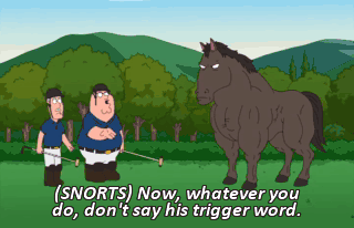 (SNORTS) Now, whatever you do, don't say his trigger word.