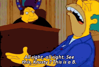 All right, all right. See this, Krusty ? This is a B. And this is Exhibit B. Betting slips-- obtained by this court indicating you have lost...
