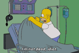 I'm not dead, idiot. I know. That was for the other patients. Ow! Ow! My thingies! (ORGAN MUSIC ON TV) We now return to Son of Satan! Everyone has a child but me.