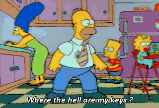 Where the hell are my keys ? Who stole my keys ? Come on. I'm late for work. Oh, Homer, you'd lose your head if it weren't securely fastened to your neck. Did you check the den ? The den ! Great idea.