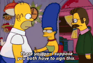 There you go. I suppose you both have to sign this. I hope blood won't be necessary. I'm game if you are, Flanders.