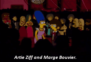 Artie Ziff and Marge Bouvier. Oh, isn't she great ? Hail Queen Marge ! Whoo ! Whoo ! Long live the queen !