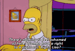 There's nothing to feel ashamed of here. Women have a right to a night out. Right, Lisa? Sure, Dad.