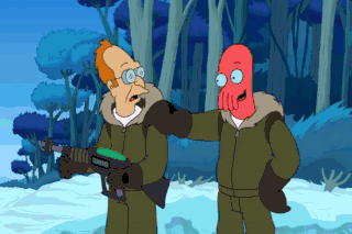(ROARING) Go, Johnny! Go! That's an order! Never! Zoidberg doesn't abandon a friend, apparently.
