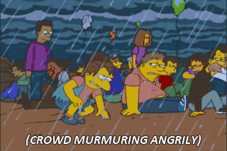 (CROWD MURMURING ANGRILY) Please don't go! Please! Please? I command you! Homie, I better start dinner. Oh!