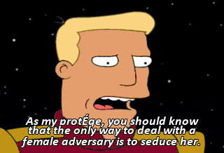 As my protÉge, you should know that the only way to deal with a female adversary is to seduce her.