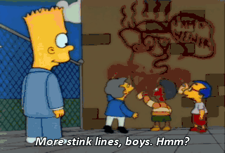 More stink lines, boys. Hmm? What are you boys doing? You didn't see nothing. Now, beat it.