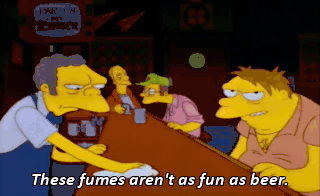 These fumes aren't as fun as beer. Sure, I'm all dizzy and nauseous, but where's the inflated sense of self-esteem? Oh! I--