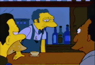 Oh! Geez! Oh, there's sugar all over the bar now! That's not funny, Homer! Yeah! We were just messin' around, and you had to go too far! How many people want Homer banned from this place for life?