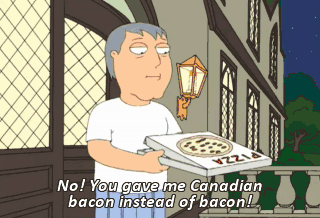 No! You gave me Canadian bacon instead of bacon! This misdeed cannot go unpunished. Pizza delivery man, prepare to meet your maker at the hands of my cat-launcher. (CAT SQUEALING) (SCREAMING)
