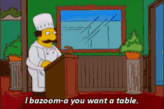 l bazoom-a you want a table. Right-a this way! Wow, Mom, your guns got us a great table... right by the lobster tank.