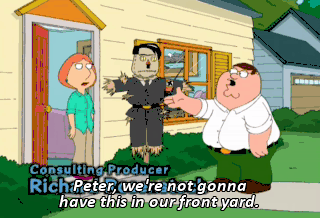 Peter, we're not gonna have this in our front yard. It's racist, and for God's sake, you ruined your best suit. Now, we're gonna have to get you a new one... Shh! Lois, Lois, look.