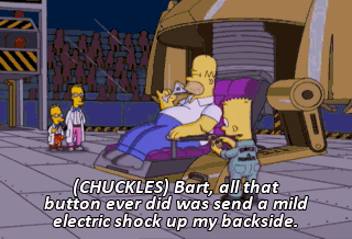 (CHUCKLES) Bart, all that button ever did was send a mild electric shock up my backside. Why did you make it do that? To keep me focused.
