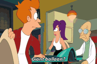 Giant balloon? (SCREECHING) See, buddy, it's not so scary. I feel better now.