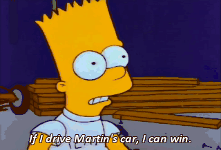 If I drive Martin's car, I can win. I'm sorry, but-- No, go ahead, leave me. Dad-- Go on and win. Go on and win without your dad.
