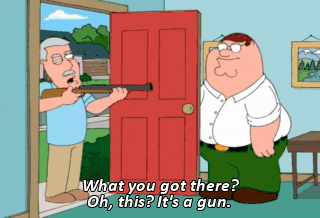 What you got there? Oh, this? It's a gun. Oh, yeah? Yeah. I'm going to kill you.
