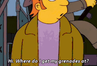 Hi. Where do I get my grenades at? Uh, they don't have them group toilets here no more, do they?