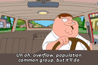 Uh oh, overflow, population common group, but it'll do