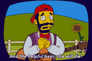 And the helpful bear, she will die! (COUGHING) Tickets, tickets buy them now Roofi he will show you how Visa, AMEX or MC Or make out that check to me!