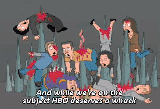 And while we're on the subject HBO deserves a whack For ending The Sopranos With a fucking cut to black And guys who when you shake their hand Just bump you with their fist