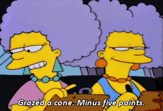 Grazed a cone. Minus five points. Being a jerk. Minus a million points!