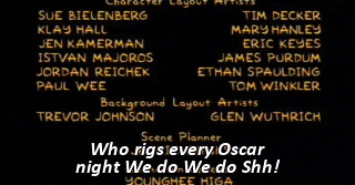 Who rigs every Oscar night We do We do Shh! Shut up!